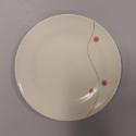 About MeThis porcelain plate is decorated with cream celadon glaze, a wavy brown line and pink dots.