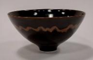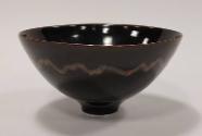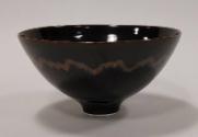 About MeThis Limoges porcelain large flaring bowl with black tenmoku glaze is decorated with a wavy pattern of ilmenite around the exterior. Ilmenite is a titanium iron-oxide mineral which creates an iridescent brown glaze when fired in a reduction kiln.