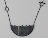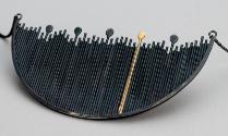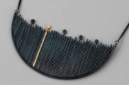 About MeTracy Wilson developed her Identity collection through experimentation with pattern, form and texture. The intriguing design of this necklace is inspired by sound wave patterns from recordings of her daughter’s voice. Arc Necklace is made from oxidised recycled silver and 18-carat gold. It has a clever design with a hoop on either side of the chain and a T-bar to allow the necklace to be worn at different lengths.