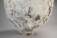About MeThis moon jar by Akiko Hirai was inspired by a flight she took over Alaska.She threw the bottom section on a wheel and then built up the top section using a coiling technique, creating a perfectly shaped jar. She then deliberately distressed the rim in the same way as when something is broken, and invites the viewer to look at this pot and complete it in their imagination.