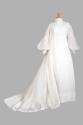 Although the dress was made in the 1980s, it still features romantic and historical fashion styles that became popular during the 1970s, like the puffed sleeves, the long train and the use of lace and embroidery as decorative items.