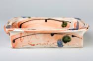 About MeSandy's lasagne dish is colourful and dramatic. The decoration is applied in a spontaneous and lively way, hand painted in pink, blue and green under a clear glaze. More About Me