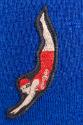 About MeThis royal blue wool swimsuit has a V-neck, Y-shaped back and bow trunks under a modesty skirt with a square-cut hem.It was made in England by Jantzen and was sold by William Whiteley Ltd in London.