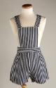 About MeThis navy and white striped playsuit comprises a bib attached to shorts with crossover adjustable straps that attach on to the front of the bib with white pearlised buttons. The bib, waistband and straps are lined with white nylon.