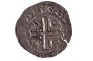 About MeObverse: crowned head (l.); sceptre-head of 4 pellets in frontReverse: cross pattee with crescent enclosing pellet in each angle of cross