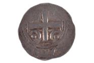 About MeObverse: crowned head (l.); cross pattee sceptre-head in frontReverse: cross pattee with crescent enclosing pellet in each angle of cross; colon between letters; no mint name