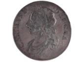 Reverse: 4 crowned shields of arms; thistles in spaces between shields; interlocking letter Cs in centre of design