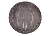 Reverse: crowned shield bearing arms of Scotland (1st and 4th quarters), England & France (2nd quarter) and Ireland (3rd); coin also has lettering on edge