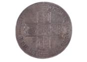Reverse: 4 crowned shields bearing arms of Scotland, England, France & Ireland; garter star in centre of design; coin has lettering on edge