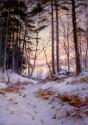 Farquharson made his reputation painting winter scenes. 'Afterglow', painted in the Forest of Birse on the Finzean estate, captures the pink glow in the evening sky and the bluish shadows cast on the snow-covered woodland. As the quiet of evening descends, rabbits make their twilight foray, oblivious to the painter's presence.