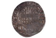 About MeObverse: crowned head facing; bearded face; r.hand holding cross-headed mace within circle of inscriptionReverse: short voided cross; quatrefoil in each angle