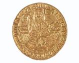 About MeObverse: king facing standing in ship; holding sword & flat-topped shield of arms; letter E on banner at stern; rose on ship's side; sun mintmarkReverse: rose upon radiate sun over centre of royal cross; crown and lion in each quarter