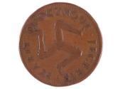 A simple but pleasing design of a ducal coronet above a monogram of the letters DA adorns the obverse while the reverse shows the triune, the 'Legs of Man' symbol.