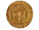About MeObverse: crowned rose; crowned initials h and k (Henry & Katherine) beside crown; rose mintmark; double saltire stopsReverse: crowned royal shield; rose mintmark; double saltire stops