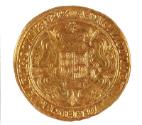 About MeObverse: king enthroned holding orb & sceptre within tressure of 19 arcs; portcullis below; rose mintmarkReverse: square shield on tudor rose; rose mintmark