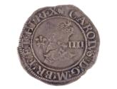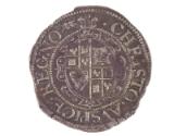 Reverse: oval garnished shield of arms surmounted by banded plumes; open book mintmark