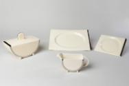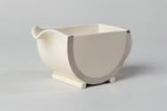 After a brief period at other Staffordshire potteries, Clarice Cliff started her creative career as a paintress at the A.J. Wilkinson factory in Stoke-on-Trent in 1919. She attended classes at local art schools and, later, briefly studied at the Royal College of Art. Encouraged by the company management, she began to try out new, colourful designs on poor quality wares at Wilkinsons' Newport Pottery. These wares were outrageously modern, designed to be easily decorated by her team of paintresses. By 1929 she had her own range of modern shapes, many bearing the 'Bizarre' tradename. Although still designing for Wilkinsons in the 1950s and 1960s, Cliff had passed the height of her creativity and later produced more traditional designs for the company.