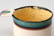 There is something comforting in the asymmetrical application of the colour on this dining set, like the colour was hand-applied rather than by machine.