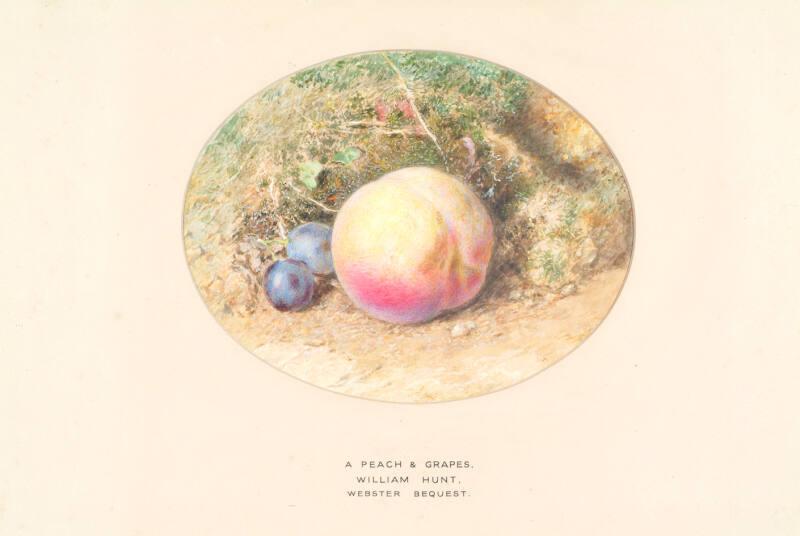 The artist earned himself the nickname 'Bird's nest' Hunt, due to his still-lifes painted in minute detail, using watercolour and bodycolour over a background of Chinese white. Although his favoured subject was birds' nests with eggs in them, in this particular example he uses the same laborious technique to depict a display of fruits, shown in a natural setting, as if they have just dropped to the ground.