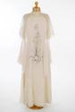 About MeThis dress was worn at Queens Cross Church, Aberdeen, on the 16th of December 1978 on what was the bride's second marriage.Notions of nostalgia surfaced in the 1970s and the style of wedding ensembles often referred to the unstructured and soft dresses of the 1920s. This cream chiffon wedding dress is long, and the waist is undefined, with delicate loose sleeves and a beautiful bead and sequin flower motif, which combine to create a dreamy quality. It was worn with a diamante tiara.