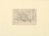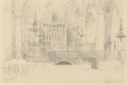 About MeAxel Herman Haig was a Swedish printmaker, painter and architect. During his career, he travelled widely to sketch in countries such as Italy, Germany and Spain. In 1880, he founded the Royal Academy of Painter-Etchers and Engravers with Francis Seymour Haden and became one of the most notable architectural draughtsmen in Britain.This drawing of the interior of the cathedral in Manresa in North East Spain is typical of Haig's balance between drama and accuracy. The tall, pointed arches soar around the elaborate Gothic altar. The large expanse of space dwarfs the lone praying figure in the foreground, as Haig simultaneously links and contrasts divine power and individual faith.