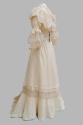 Margaret Dempster, a trained seamstress, made this two piece as a ballgown in the late 1890s, but added yolk, high neck and updated fashion details for her own wedding