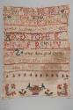 The upper section comprises alphabets, numerals and family initials interspersed with bands of various stitch patterns.