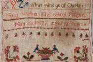 About MeThis linen cross stitch sampler was made by Mary Walker aged 10 years at the Episcopal School in Forgue, Aberdeenshire in 1859.