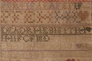 The upper section comprises alphabets, numerals and family initials interspersed with bands of various stitch patterns.