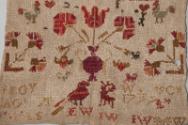 About MeThis linen cross stitch and eyelet stitch sampler was made by Pegy in 1777.