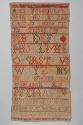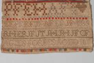 Agnes has used leftover thread to stitch a colourful border at the top and bottom of her sampler.