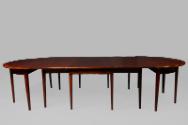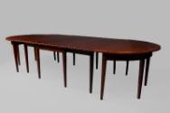 About MeMahogany 5 leaf dining table with ebony and satinwood stringing and rounded ends. There are 14 square section legs tapering to the ground including 4 hinged gate legs.More About Me