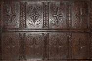 About MeOak 4 post bed with turned baluster or cup and cover posts supporting a panelled and carved tester with a lozenge and star design. The headboard is also panelled and carved, but with a lozenge and foliate design. The bed has square section legs.c.1650