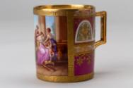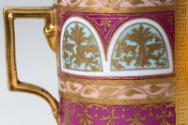 If this coffee can was presented at a local café it would cause a stir! Made in Vienna, Austria it is heavily decorated and a distinctive piece of porcelain.