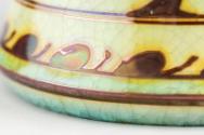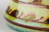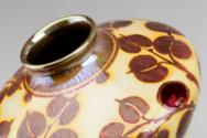 This earthenware vase is decorated in an Art Nouveau style, which was inspired by forms found in nature such as the curved stems and blossoms of plants.