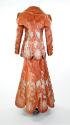 About MeFor his first solo collection of 1972 Bill Gibb collaborated with the artist Sally MacLauchlan who screen-printed the silver chrysanthemum, foliage and bee motifs onto the leather. The effect of the highly decorative design in silver on the rich chestnut leather background is striking. Gibb's attention to detail is further demonstrated by the chrysanthemum buttons that he has chosen to finish the piece.
