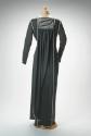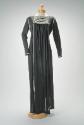 The black dress also features a beaded yoke by Lesley Hogger and is trimmed with crystal beaded braid. This dress was worn by Bill's business partner, Kate Franklin. Dated to 1975.