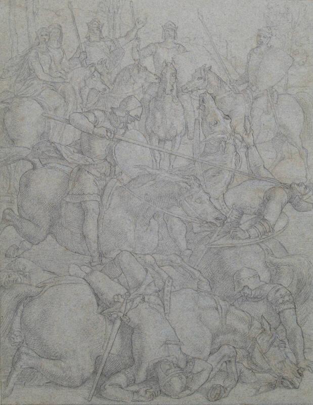 About MeThis may be a preparatory sketch for the Morte D'Arthur frescos at Westminster. It is not directly related to any of the subjects in the Queen's Robing Room. However, the unmistakable figures of Guinevere and King Arthur, who has the same helmet and parted beard as in the sketch for Generosity suggest that this is possibly another, earlier exploration, of the Arthurian legends. Dyce must have decided to abandon the subject, realising that it was too violent for the Commissioners' taste.Robert Burns