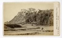 About MeCarte de visite of Stirling Castle as seen from the King's Park. The castle sits atop a crag and was built from the twelfth century onwards. Several Scottish Kings and Queens have had their coronations there including Mary Stuart, Queen of Scots in 1542. In the foreground a young man appears to be pushing something, possibly a wheelbarrow in the shadow of the castle. g.w.wilson no.491 aberdeen
