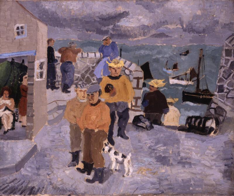 Wood returned to St Ives in September 1928 and encountered there a retired seaman turned painter, Alfred Wallis. Inspired by Wallis' work Wood approached the seascapes and town views of the Cornish coastline with fresh eyes, adopting a deliberately naïve approach.