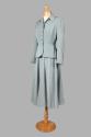 During World War II, to save fabric, clothes were simply designed and cut straight and short. Post war, the “New Look” style allowed fuller and longer skirts - and waists reappeared.