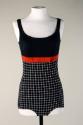 About MeThis black and white checked swimsuit has low cut legs and a round back. It is made of Bri-Nylon which is stretchy and dries quickly after swimming.