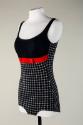 About MeThis black and white checked swimsuit has low cut legs and a round back. It is made of Bri-Nylon which is stretchy and dries quickly after swimming.