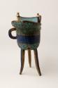 About MeChinese archaic ritual bronzes were made in sets, filled with offerings of food and drink to the ancestors of the past and placed in the tombs of China’s elite. They were made in specific shapes and each shape has a different name. The shape of this bronze ritual wine vessel is called jue and it has a prominent spout and long tripod legs.