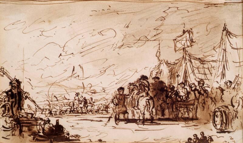 More About MeWidely renowned for his genre painting and historical scenes, Sir David Wilkie here depicts an encampment of soldiers against a dismal backdrop. The inky textures of the artwork coalesce into a dismal backdrop with smoky textures, articulating the mournful and sombre nature of warfare.