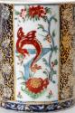 About MeSoft-paste mug based on an imaginary Japanese or Chinese style pattern, with some elements drawn from contemporary Worcester styles. The Jabberwocky pattern featuring an exotic bird like creature with magnificent tail was derived from Chinese porcelain. The name, which became current in the 19th century, was from Lewis Carroll's Through the Looking Glass.