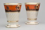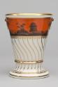 Classic-shaped jardiniere combining gilding with a painted vignette and deigned to hold cut flowers or to grow flowering plants