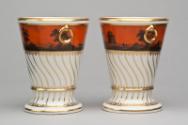 Classic-shaped jardiniere combining gilding with a painted vignette and deigned to hold cut flowers or to grow flowering plants
