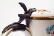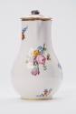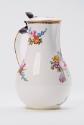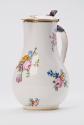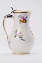 This little jug with a lid was produced by the French porcelain factory, Sèvres. What do you think it used to hold?