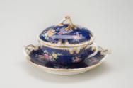 An ecuelle is a two-handled soup bowl. This one was made during the reign of King Louis XV of France.